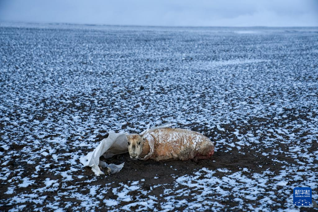 6月15日清晨,在西藏那曲市尼瑪縣境內(nèi)的羌塘國(guó)家級(jí)自然保護(hù)區(qū)“無(wú)人區(qū)”深處,受傷的母藏羚羊已經(jīng)死去。新華社記者 旦增尼瑪曲珠 攝