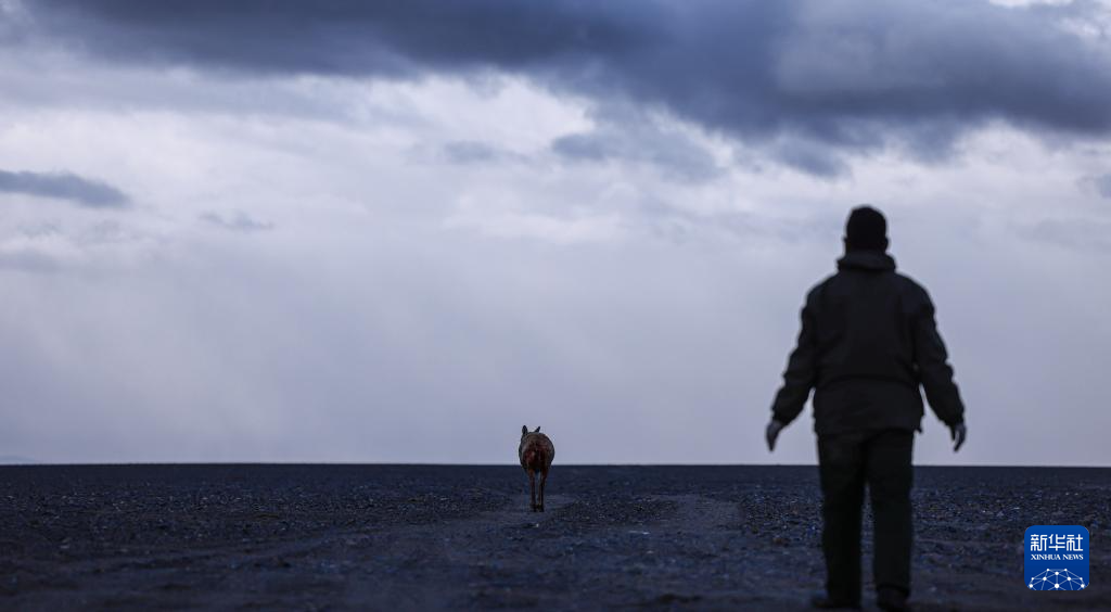 羌塘國(guó)家級(jí)自然保護(hù)區(qū)的野保員上前查看受傷的母藏羚羊(6月14日攝)。新華社發(fā)(旦增攝)