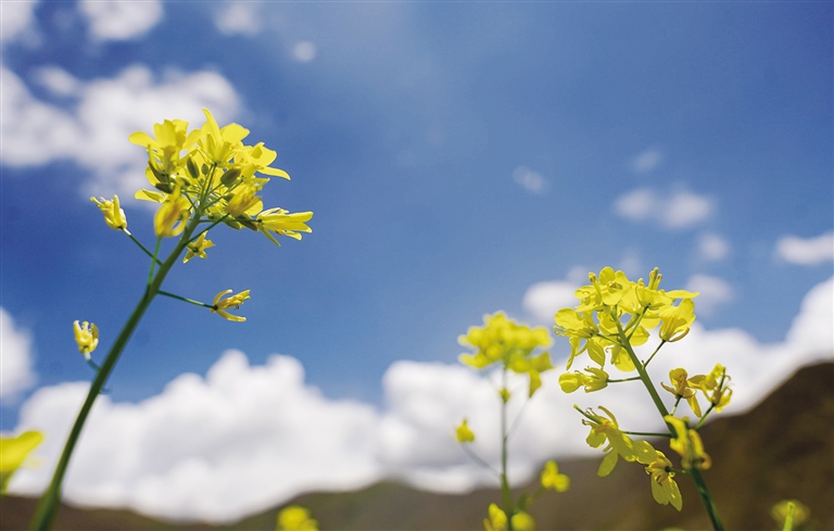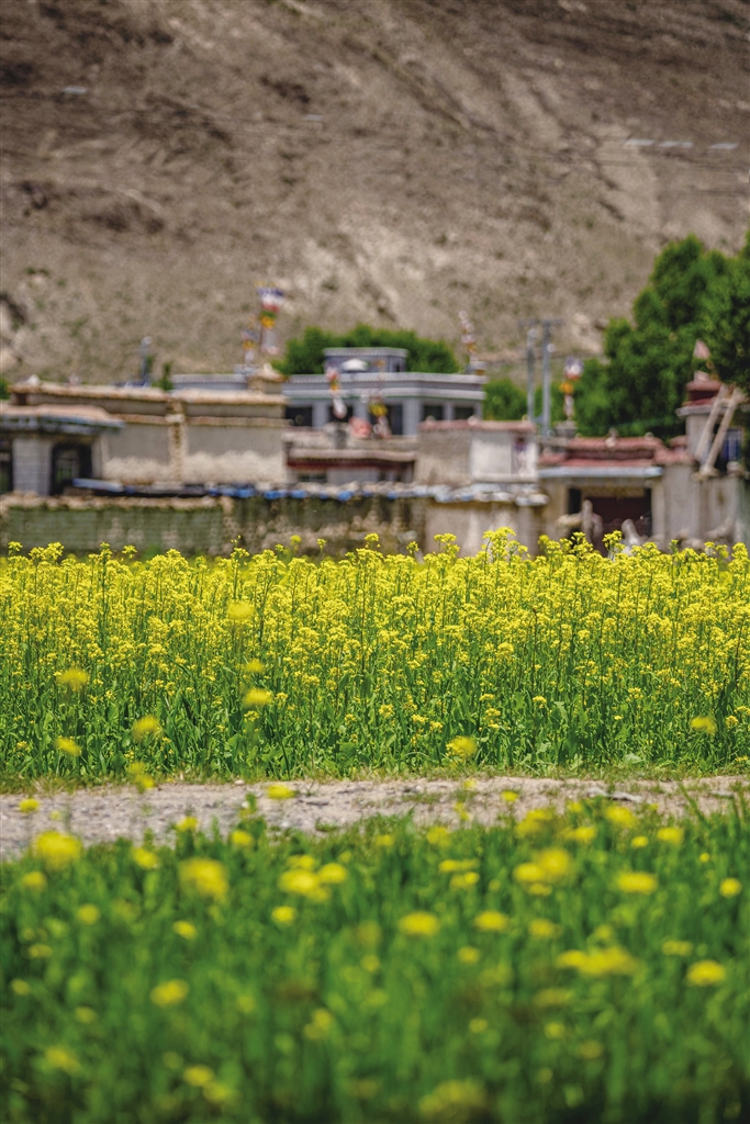 西藏的春天可以欣賞桃花,夏天可以欣賞什么花?那當(dāng)然是油菜花。近期,西藏各地迎來了油菜花盛開的季節(jié)。行走在夏日的農(nóng)田里,金黃色的油菜花給綠意盎然的農(nóng)田增添了幾分色彩。放眼望去,在藍天白云的映襯下,油菜花海如同金黃色的毯子般鋪展開來,花海在微風(fēng)中輕聲搖曳,與一旁的道路、錯落有致的村居共同構(gòu)成了一幅和諧美麗的田園風(fēng)景圖。