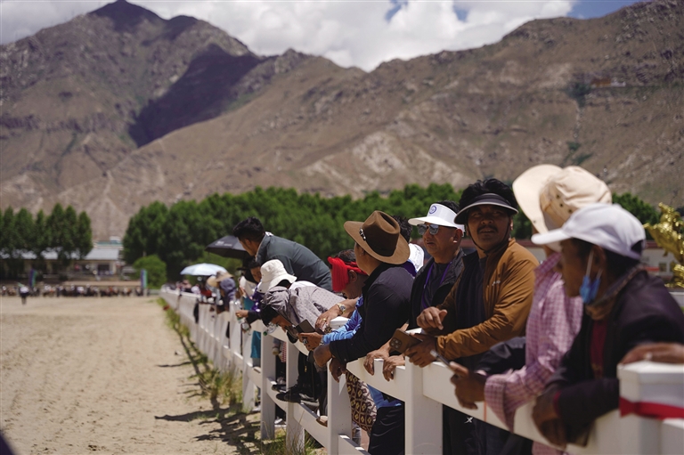 說(shuō)起西藏的民族傳統(tǒng)體育項(xiàng)目,很多人都會(huì)想到“抱石”“賽?!边@類(lèi)運(yùn)動(dòng)。本屆運(yùn)動(dòng)會(huì)抱石頭比賽在賽馬場(chǎng)舉行,現(xiàn)場(chǎng),選手們沉著冷靜,許多人都是先圍著石頭轉(zhuǎn)一圈,仔細(xì)打量,身體半蹲后再慢慢抱起石頭。抱石頭非??简?yàn)選手的力量和忍耐力,現(xiàn)場(chǎng)也有選手因體能消耗過(guò)多,抱起石頭至腹部后放棄比賽。
