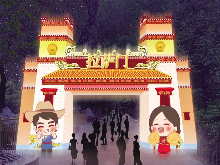 記者了解到,“點(diǎn)亮拉薩——秦淮燈會(huì)”在宗角祿康公園東門設(shè)置大型燈組,搭配拉薩的吉祥物牦牛、江蘇的吉祥物麋鹿,燈組用拉薩經(jīng)典配色,搭建飄逸的彩帶雙翼,表達(dá)“蘇拉一家親,攜手向未來(lái)”的寓意。在公園走廊里、草坪上,還用精致的現(xiàn)代光影作品,安排展示江南煙雨、小橋流水、青磚黛瓦、梅瓶明珠、桃花仙鶴、油傘折扇、上元燈彩等富有江蘇特色的美景雅韻以及具有拉薩特色的建筑和文化精品。