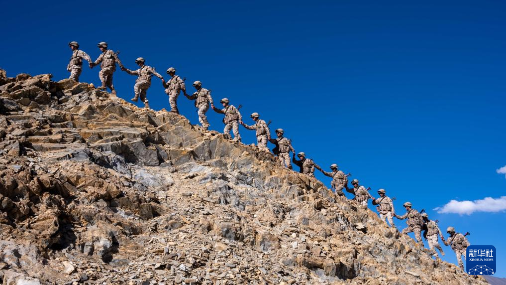 西藏阿里軍分區(qū)普爾楚邊防連秋迪儉革拉哨所巡邏官兵前往海拔5700米的點位進(jìn)行巡邏(6月29日攝)。新華社發(fā)(戴學(xué)武 攝)