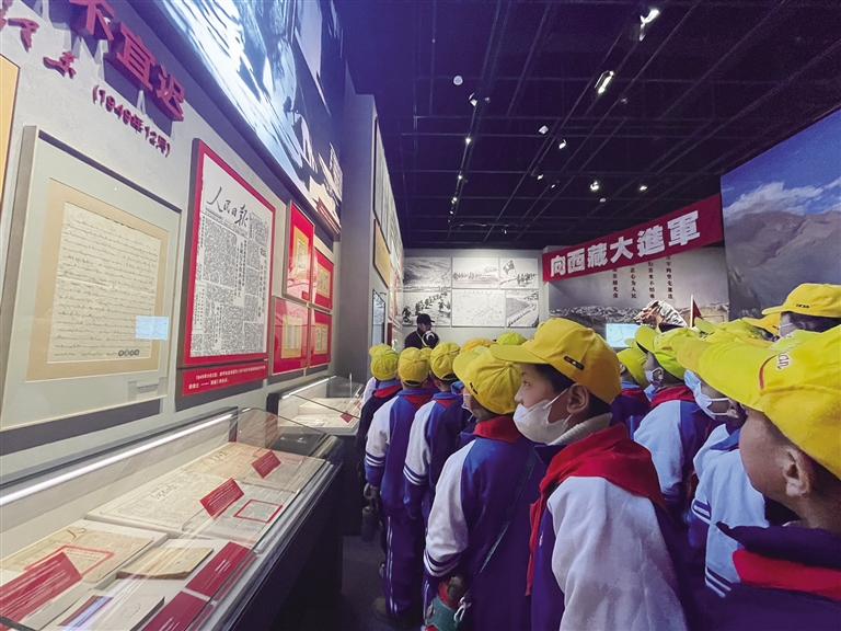 學(xué)生在西藏博物館參觀。記者 趙越 攝