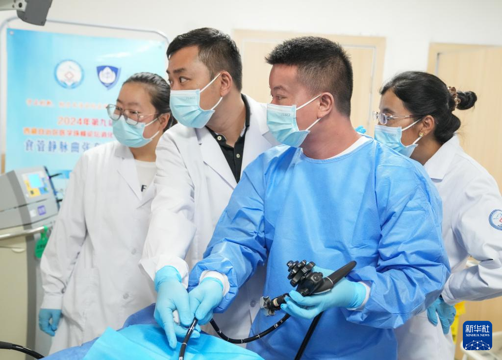 在日喀則市人民醫(yī)院,段穎騫(左一)在進行內鏡手術(7月8日攝)。新華社記者 丁汀 攝