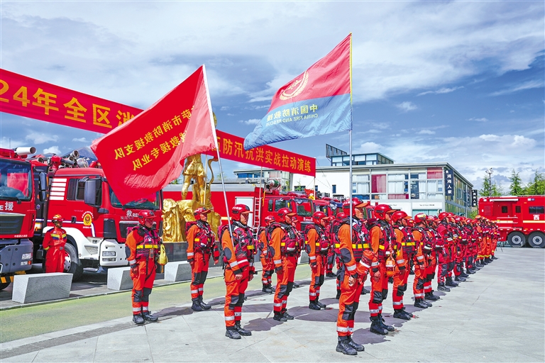 為深入貫徹落實習近平總書記關(guān)于防汛抗旱重要指示批示精神,近日,西藏自治區(qū)消防救援總隊按照自治區(qū)黨委、政府和國家消防救援局相關(guān)工作安排部署,聯(lián)合區(qū)水利廳、公安廳、交通運輸廳、自然資源廳、氣象局等聯(lián)勤聯(lián)動單位開展2024年全區(qū)消防救援隊伍防汛抗洪應(yīng)急救援實戰(zhàn)演練。