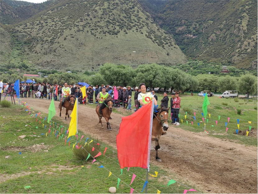 7月22日,林芝鎮(zhèn)第七屆尼洋旅游文化之民俗賽馬藝術(shù)節(jié)在西藏林芝市巴宜區(qū)林芝鎮(zhèn)嘎拉村舉行。賽場上,駿馬奔騰,選手們策馬揚鞭,激烈角逐,觀眾的喝彩聲此起彼伏,場面熱鬧非凡。據(jù)了解,已舉辦七屆的賽馬藝術(shù)節(jié)不僅是當(dāng)?shù)氐膫鹘y(tǒng)節(jié)慶,更是展示地方文化經(jīng)濟特色的盛會。