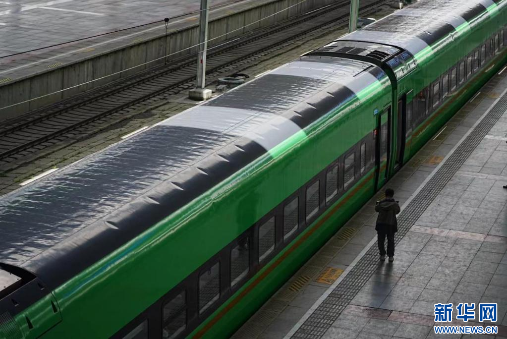 (7月23日,拉薩到日喀則的動車準(zhǔn)備出發(fā)。新華網(wǎng)發(fā) 姚翔碩攝)