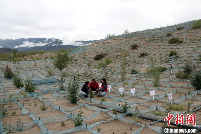山南市全國(guó)防沙治沙綜合示范區(qū)(桑耶核心區(qū)),中國(guó)科學(xué)院成都山地所科研人員現(xiàn)場(chǎng)查看并交流。中新網(wǎng)記者孫自法攝