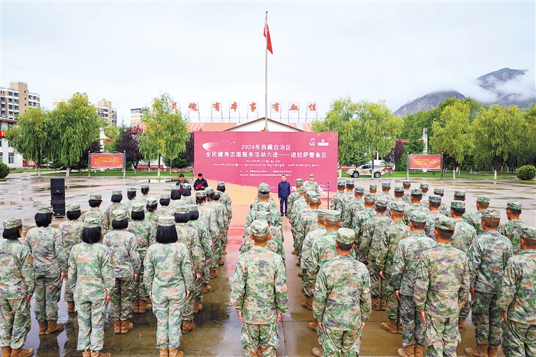 圖為近日,西藏自治區(qū)體育局及體育總會(huì)干部職工走進(jìn)駐藏某部,開展全民健身志愿服務(wù)“六進(jìn)”暨送體育進(jìn)部隊(duì)活動(dòng)。這是活動(dòng)現(xiàn)場。通訊員 梁康 記者 唐斌 攝