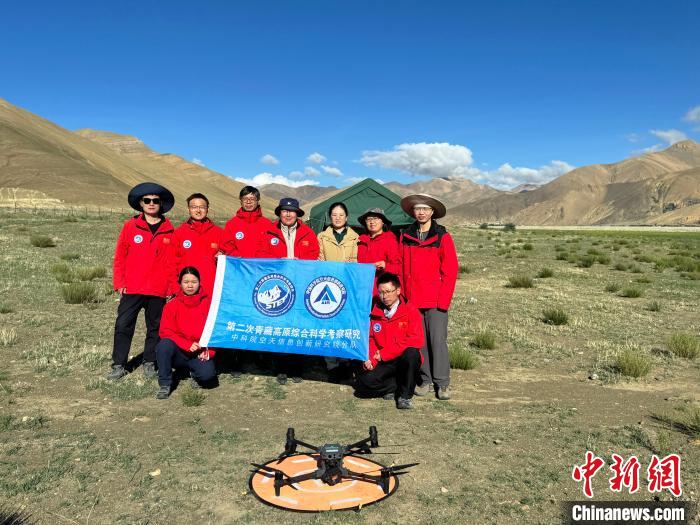 8月1日,作為二次青藏科考一項重要組成部分,珠峰地區(qū)首次開展航空平臺水-熱-碳通量觀測試驗正式啟動,圖為參加試驗任務的科考隊員代表合影。中新網(wǎng)記者 孫自法 攝