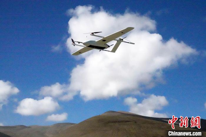 8月1日,作為二次青藏科考一項重要組成部分,珠峰地區(qū)首次開展航空平臺水-熱-碳通量觀測試驗正式啟動,圖為參加試驗任務的無人機起飛開展觀測。中新網(wǎng)記者 孫自法 攝