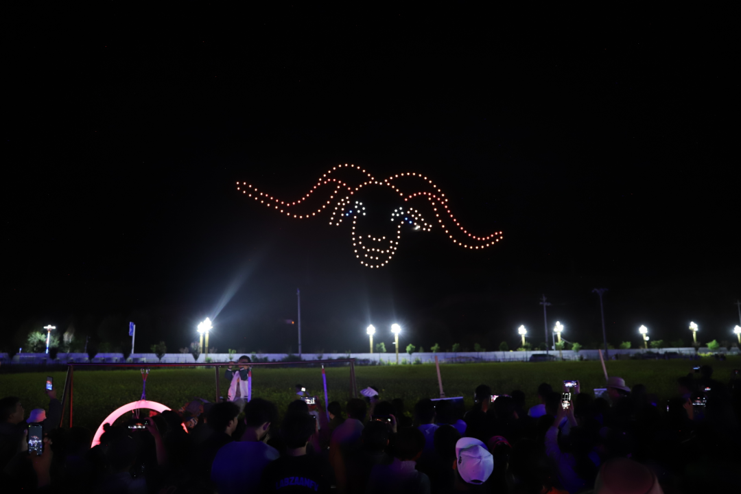 伴隨著篝火晚會(huì)的進(jìn)行,200架無(wú)人機(jī)騰空而起,通過(guò)傳奇昌都、團(tuán)結(jié)發(fā)展、產(chǎn)業(yè)興旺3個(gè)篇章舞動(dòng)出一場(chǎng)流光溢彩的視覺(jué)盛宴,以極具時(shí)尚先鋒的方式向大家推介傳奇昌都,推介奇境貢覺(jué)。