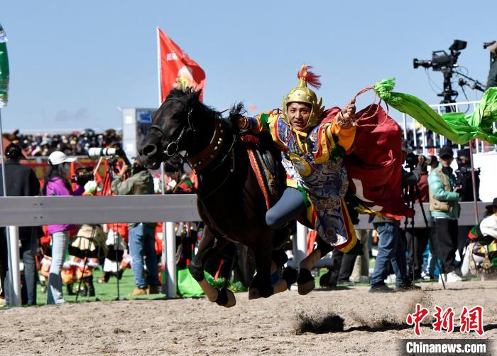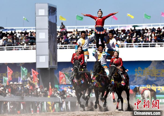 8月10日,2024年那曲恰青賽馬節(jié)暨第三屆“鄉(xiāng)村振興 那曲奮進(jìn)”活動開幕式在那曲市賽馬場舉行,精彩的文藝歌舞、馬術(shù)表演等展示著羌塘草原上的無窮魅力和活力。圖為開幕式上的馬術(shù)表演。中新社記者 李林 攝