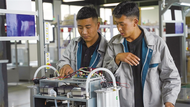 西藏清匠電器科技有限公司執(zhí)行董事劉炎林介紹,公司自2019年落地山南市乃東區(qū)以來,除了吸納本地大學(xué)生就業(yè)外,還堅持為當?shù)厝罕姶罱ā凹议T口”的就業(yè)平臺,截至目前,已經(jīng)帶動當?shù)?00余人就業(yè)。
