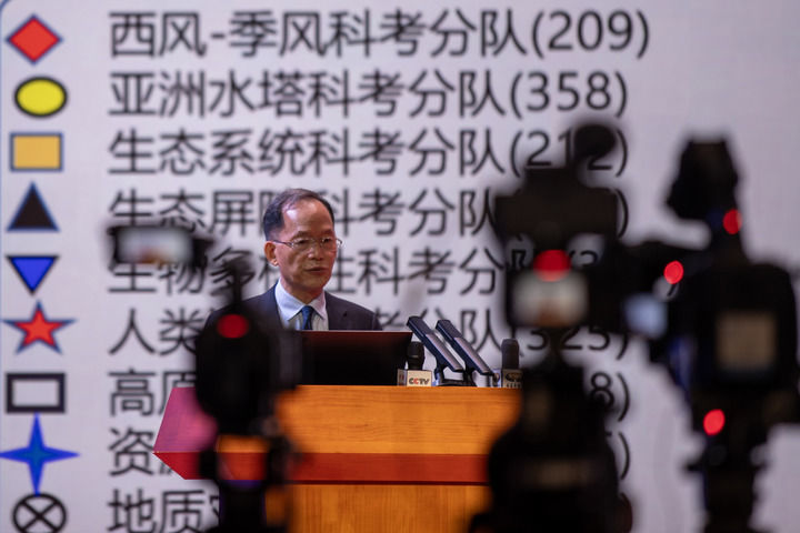 2024年8月18日,第二次青藏科考隊隊長姚檀棟院士在拉薩對本次科考10大任務(wù)的重要成果進行集中發(fā)布。 新華社記者 姜帆 攝