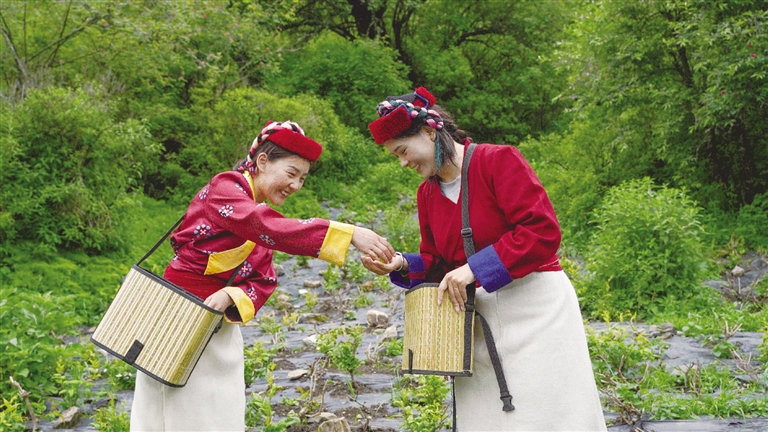 在綠意盎然的茶園中,幾位勤勞的婦女正凝視著茁壯成長的莓茶,眼中滿是贊許與喜悅。莓茶試種的這段歷程,直接惠及了周邊的村民,他們親眼見證了這些稚嫩幼苗如何一步步蛻變?yōu)榉泵牟铇?綠蔭如蓋,生機勃勃?!拔覀冊诓鑸@的工作是翻土、除草、種植、澆灌和采摘,一天能掙200塊錢,年底還有分紅,今年的采摘季也快到了,聽說今年的分紅會更多,村民都挺期待的?!卞e那市貢日門巴民族鄉(xiāng)斯木村村民卓瑪措姆說。