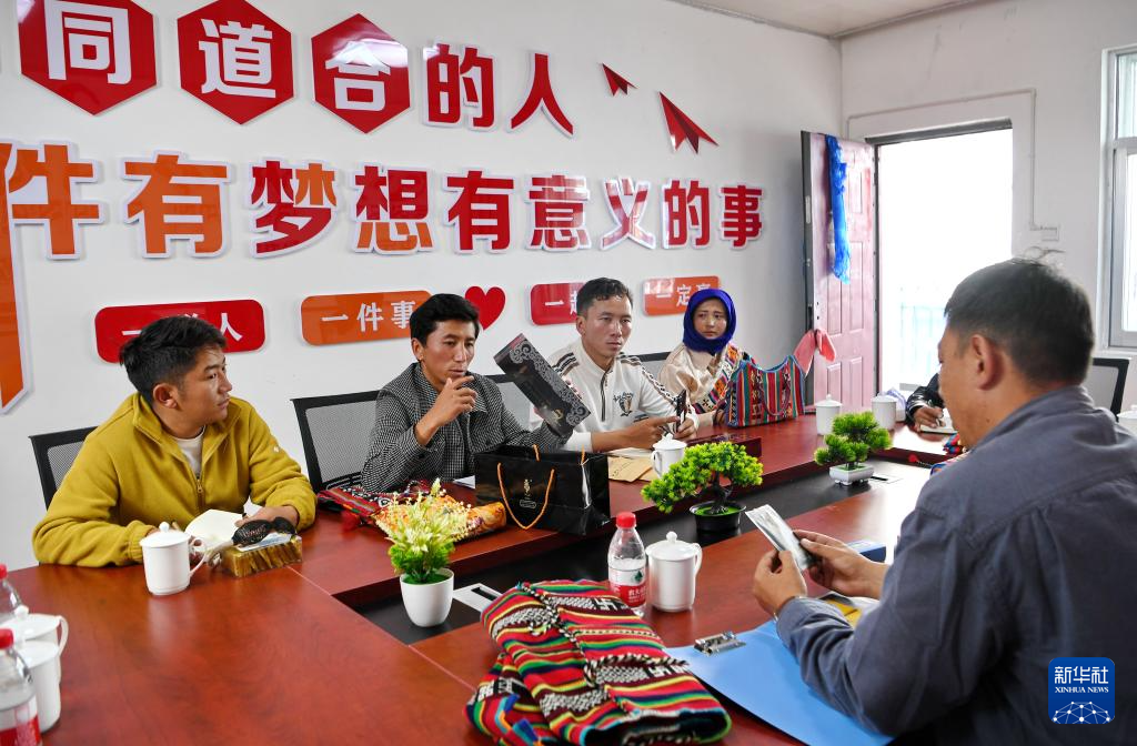 倉(cāng)秋多吉(左二)和團(tuán)隊(duì)核心成員商討產(chǎn)品銷(xiāo)售提升策略(8月24日攝)。新華社記者 張汝鋒 攝