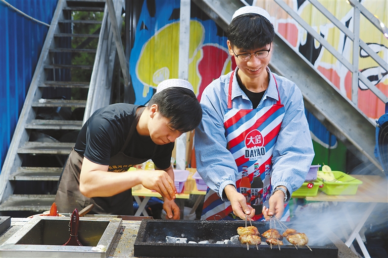 8月31日晚,記者走進這個煙火氣十足的夜市中,流光溢彩的燈火里,人頭攢動,繁榮的夜經(jīng)濟里,味蕾被觸動。鍋碗瓢盆叮當(dāng)作響,各類小吃攤開始緊鑼密鼓地營業(yè),攤位上飄來的香氣惹人垂涎,人們穿梭于各個攤位之間,品嘗著各類特色小吃,感受著濃濃的煙火氣。