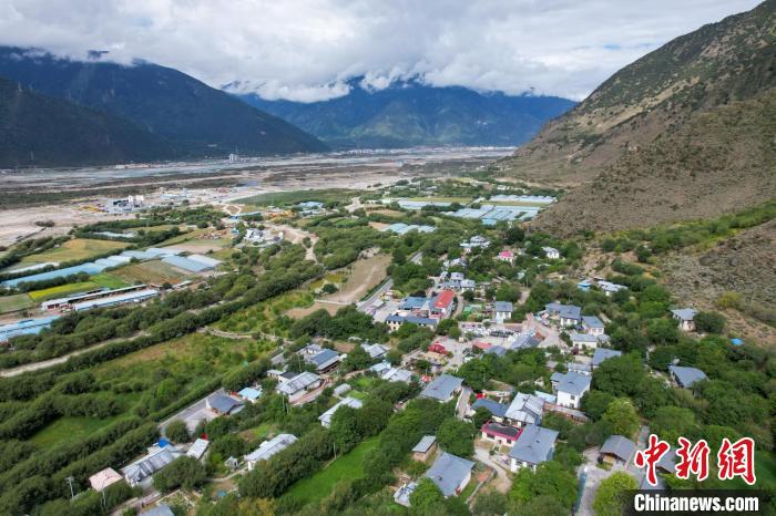 圖為航拍被綠蔭環(huán)繞的林芝嘎拉村風光。江飛波 攝