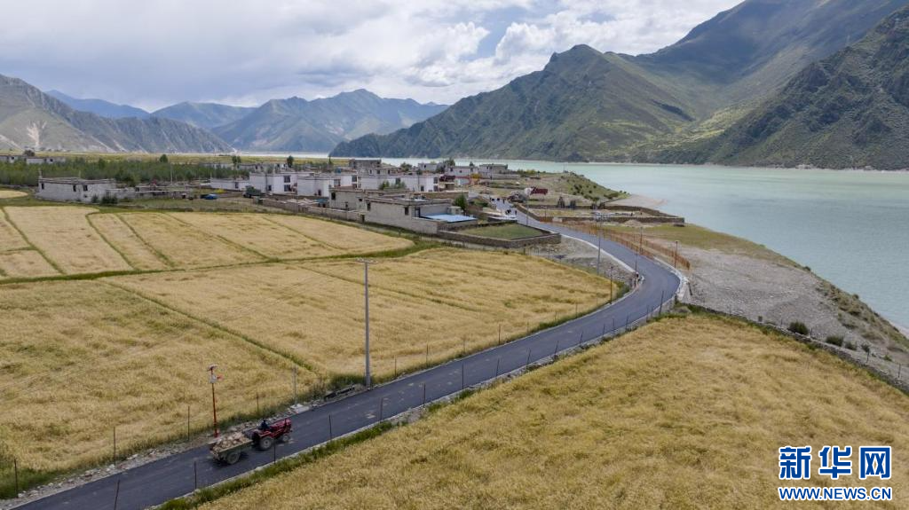 9月4日, 宜居宜業(yè)和美鄉(xiāng)村建設(shè)項(xiàng)目實(shí)施后的墨竹工卡縣尼瑪江熱鄉(xiāng)幫達(dá)村面貌 ( 無(wú)人機(jī)照片 )。 新華網(wǎng)發(fā) 洛克 攝
