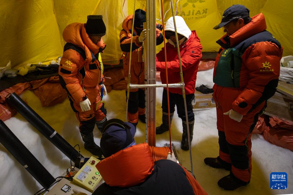9月11日晚,由中國科學院青藏高原研究所副所長徐柏青研究員帶領(lǐng)的科考團隊在普若崗日冰原頂部海拔6100米的“Dome.C”點開機鉆取冰芯。