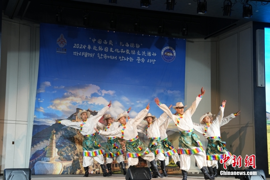 當?shù)貢r間9月25日,“中國西藏·扎西德勒”2024年赴韓國文化和旅游交流活動在首爾舉行。中國西藏自治區(qū)黨委書記王君正、中國駐韓國大使館臨時代辦方坤、韓國東亞文化中心院長盧載憲,以及韓國社會各界友好人士、在韓留學(xué)生代表等出席活動。圖為演出現(xiàn)場。