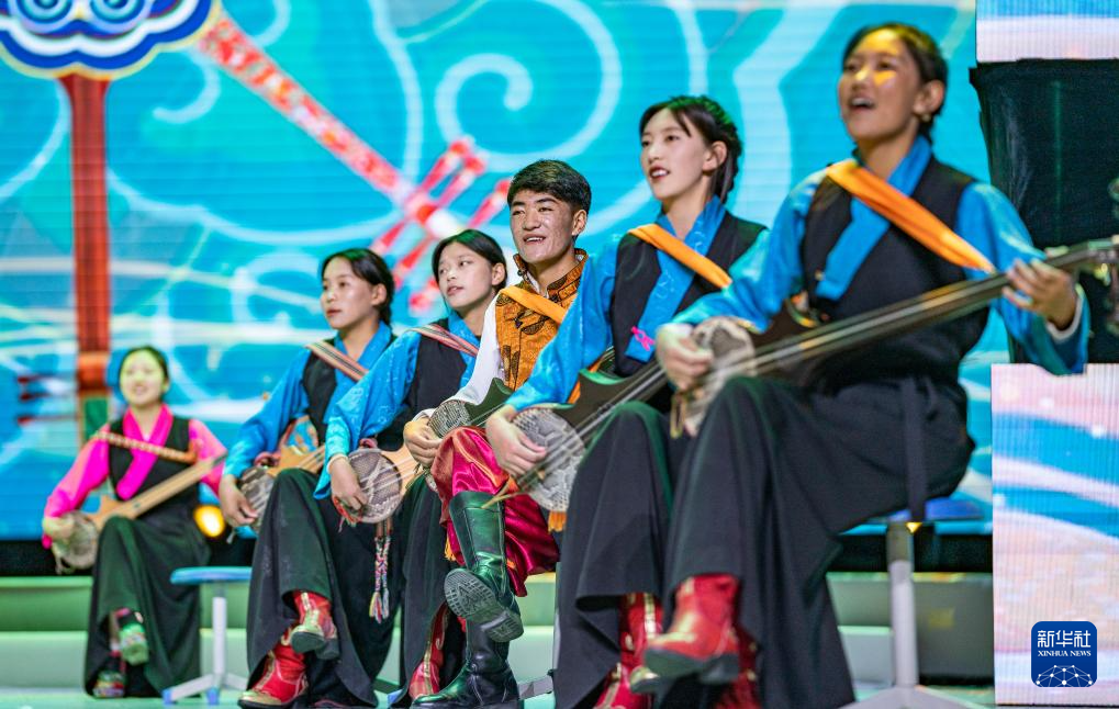 拉薩阿里河北完全中學(xué)的學(xué)生在表演節(jié)目(9月25日攝)。新華社記者 丁增尼達(dá) 攝