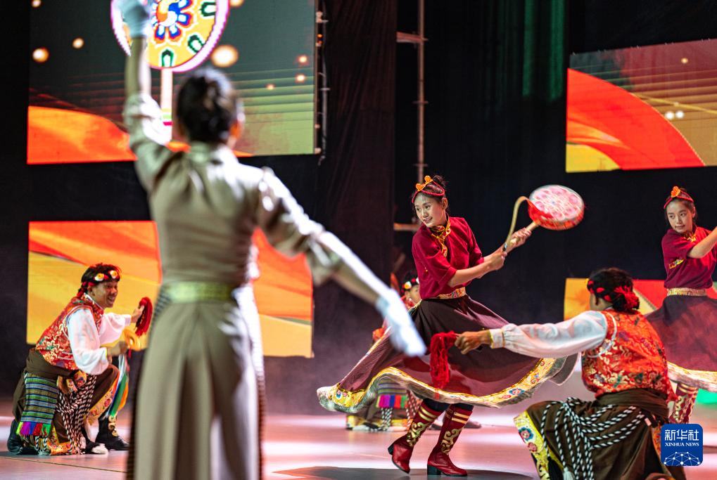 拉薩江蘇中學(xué)的學(xué)生在表演節(jié)目(9月25日攝)。新華社記者 丁增尼達(dá) 攝