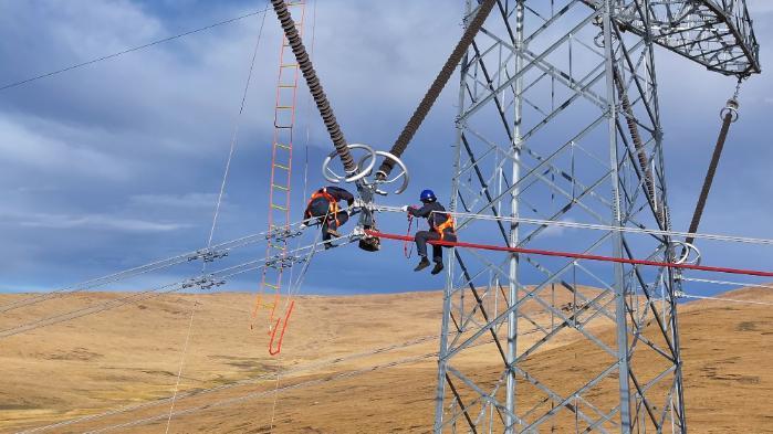 9月的林周,高原的陽光刺得睜不開眼。在走線現(xiàn)場,小組負責人扎西頓珠指揮兩名工作人員上塔進行懸掛接地線,隨后,兩名走線人員頂著強烈的紫外線對2329號至2325號鐵塔開展線路走線工作,在走線過程中,他們認真檢查導線有無磨損、斷股、嚴重銹蝕、外層損傷、零部件缺失等缺陷?,F(xiàn)場走線組負責人扎西頓珠向記者介紹“在高海拔、大溫差、強風沙的氣候環(huán)境下,設備長期暴露在外,受到風吹日曬雨淋,為精準掌握設備狀況,每年年檢都要開展走線消缺工作?!?/p>