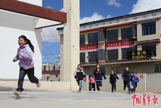 9月14日,西藏那曲市班戈縣第二(中石化)小學(xué),學(xué)生們課間休息時(shí)在戶外玩耍。中青報(bào)·中青網(wǎng)記者 孔斯琪/攝