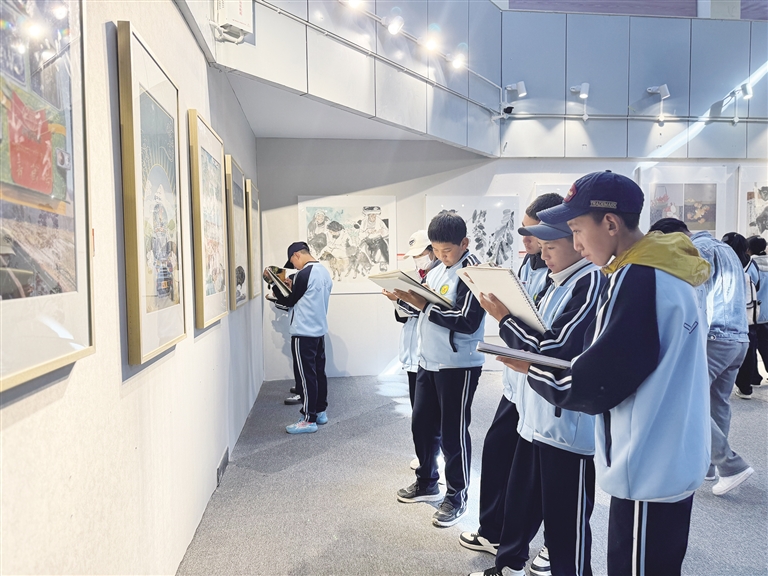 走進展廳,首先映入眼簾的是一幅幅色彩斑斕、構圖精美的畫作。這些作品主題緊扣民族團結(jié)進步、鄉(xiāng)村振興、城市建設、民俗風情等,展現(xiàn)了各民族地區(qū)的新面貌、新變化、新發(fā)展。