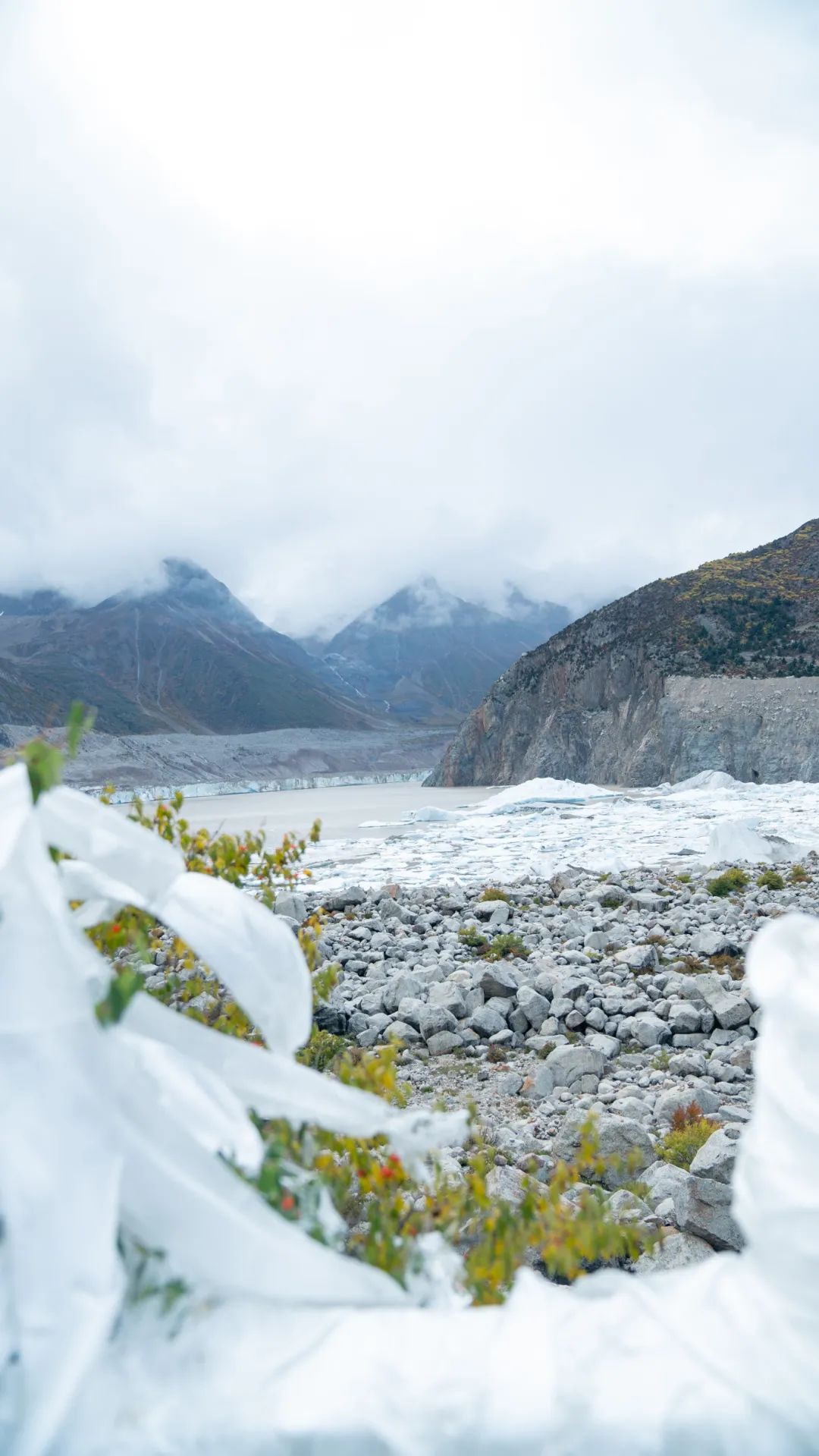 在八宿來(lái)古村,環(huán)顧四周可見(jiàn)至少6條冰川,統(tǒng)稱(chēng)來(lái)古冰川群。冰川從海拔6600多米的山峰一路傾瀉至海拔4000米左右,站在它寬闊的冰體之上,猶如穿越到冰河世紀(jì)。當(dāng)我們站在陽(yáng)光照耀下絕美的天然藍(lán)冰洞里,仿佛穿越進(jìn)童話(huà)之中。當(dāng)日頭漸漸落下,在然烏湖畔,萬(wàn)丈金光從天而降照射在雪山之巔,一幅“日照金山”之景就此“繪制”完成。
