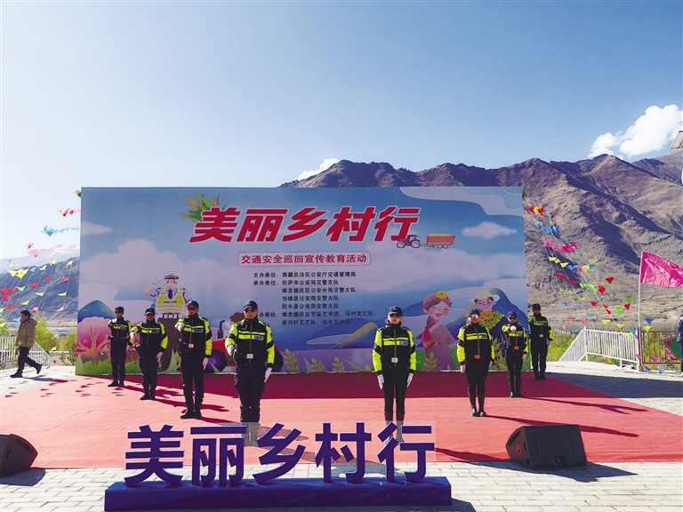 為全面提升農(nóng)牧區(qū)群眾交通安全意識、法治意識、文明意識,全力防范涉農(nóng)道路交通事故、保障農(nóng)牧區(qū)廣大群眾生命財(cái)產(chǎn)安全和出行安全,近日,由自治區(qū)公安廳交通管理局主辦,拉薩市公安局交警支隊(duì)、堆龍德慶公安分局交警大隊(duì)、當(dāng)雄縣公安局交警大隊(duì)、尼木縣公安局交警大隊(duì)承辦的“美麗鄉(xiāng)村行”交通安全巡回宣傳教育活動在堆龍德慶區(qū)古榮鎮(zhèn)加入村榮瑪搬遷點(diǎn)舉行。