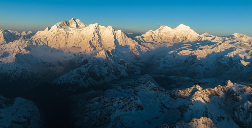 這是晨光照耀下的喜馬拉雅山脈一隅(4月17日攝,無人機(jī)照片)。新華社記者 丁增尼達(dá) 攝