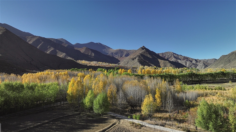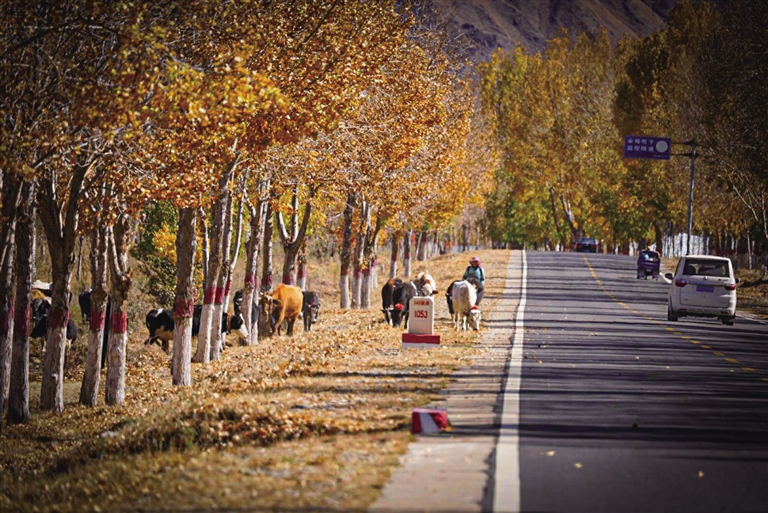 G318被稱為“中國(guó)景觀大道”,沿途壯麗絕美的風(fēng)光令人心醉神迷。恰風(fēng)和日麗的一天,記者一行驅(qū)車(chē)前往G318曲水段與達(dá)孜段。一路層林盡染,落葉飄飛,如詩(shī)如畫(huà),美不勝收。