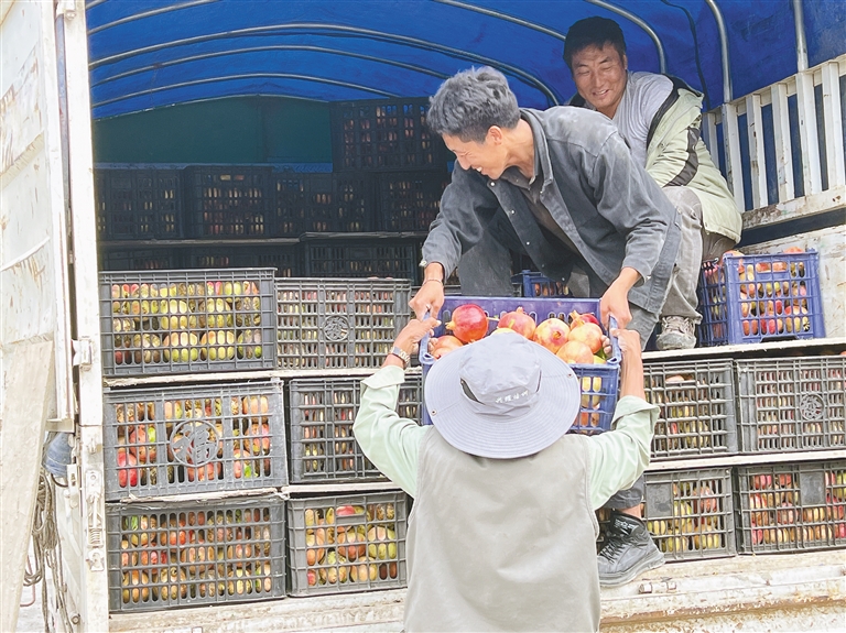 圖為昌西村果農(nóng)將石榴裝車,準(zhǔn)備外運(yùn)銷售。 記者 劉楓 通訊員 吳子偉 攝
