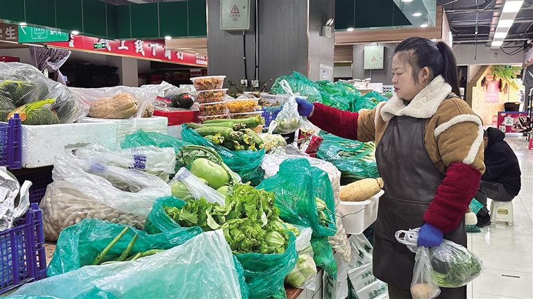 除了農(nóng)貿(mào)市場(chǎng),商超售賣(mài)的蔬菜也備受市民青睞。在拉薩市城關(guān)區(qū)東郊的一家大型超市,記者看到蔬菜區(qū)人流如織,菜品十分新鮮。在價(jià)格方面,茄子每斤8.98元、嫩南瓜每斤4.98元、菠菜每斤10.98元、小白菜每斤5.98元、大白菜每斤2.58元?!岸蕴}卜,夏吃姜?,F(xiàn)在天氣冷了,買(mǎi)些蘿卜回家燉湯,暖胃又暖心。”一位正在挑選蘿卜的阿姨說(shuō)道,“超市的蔬菜種類(lèi)齊全,購(gòu)物環(huán)境也好,我很喜歡來(lái)這里買(mǎi)菜?!?/p>