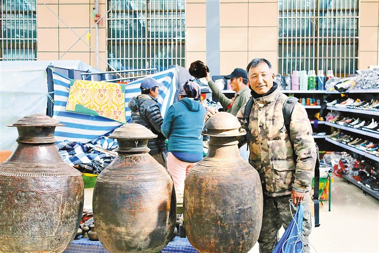 尼泊爾商戶加央在里孜口岸臨時(shí)交易市場(chǎng)。通訊員 西繞拉珍 記者 頓珠扎西 攝