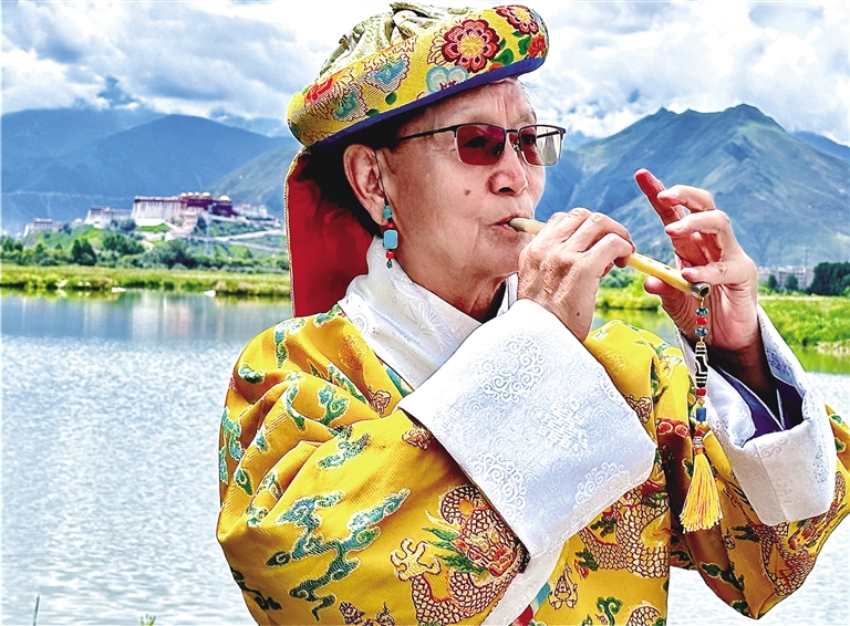 交談中,時間仿佛回到了1963年。當時年僅13歲的次旦由國家民委招生,被保送到北京的中央民族學院,開始系統(tǒng)學習民族器樂專業(yè),專攻竹笛演奏,從此走上了藝術(shù)之路?!拔覀円黄鹑ケ本W習的共有24人,當時大家年紀還小,不知道去北京學習意味著什么,后來才慢慢了解到我們身上承擔著藏族民族器樂的傳承與推廣的責任,所以大家都很刻苦地學習和訓練?!贝蔚┱f。