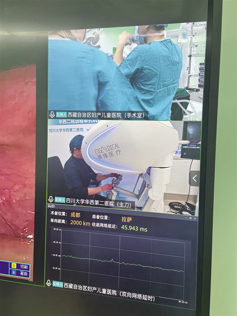 梅玲介紹,此次手術(shù)是與四川大學華西第二醫(yī)院聯(lián)合開展的,由四川大學華西第二醫(yī)院的鄭瑩教授團隊主刀,并依托華西的先進技術(shù)平臺,通過遠程方式完成手術(shù)。手術(shù)結(jié)束后,鄭瑩教授通過視頻向大家介紹,這場跨越2000公里距離與3000米海拔差異的手術(shù),總共用時1小時45分鐘,網(wǎng)絡(luò)延遲僅40毫秒。“此次手術(shù)的成功為今后更多優(yōu)質(zhì)資源技術(shù)送達偏遠地區(qū)提供了重要參考,也為提高西藏醫(yī)療水平打下了堅實的基礎(chǔ)?!编崿撜f。