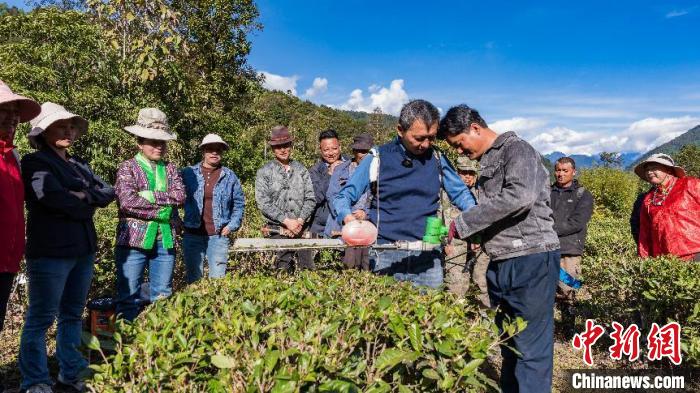 圖為技術專家詳細講解茶樹修剪的科學方法。墨脫縣人力資源和社會保障局供圖