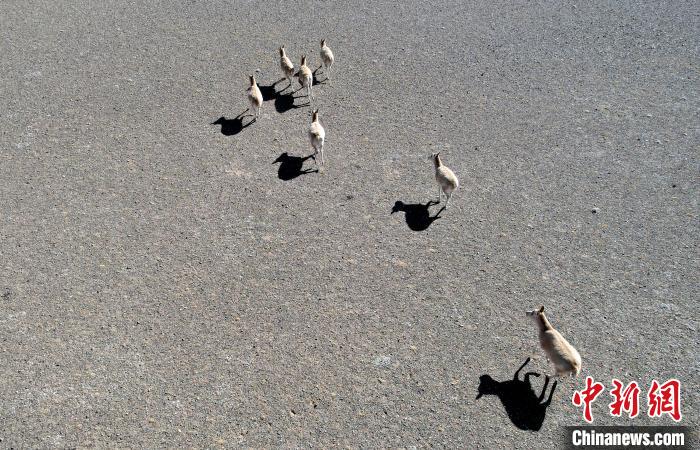圖為12月8日,棲息在魯確塘草原的藏羚羊。(無(wú)人機(jī)照片)中新社記者 李林 攝