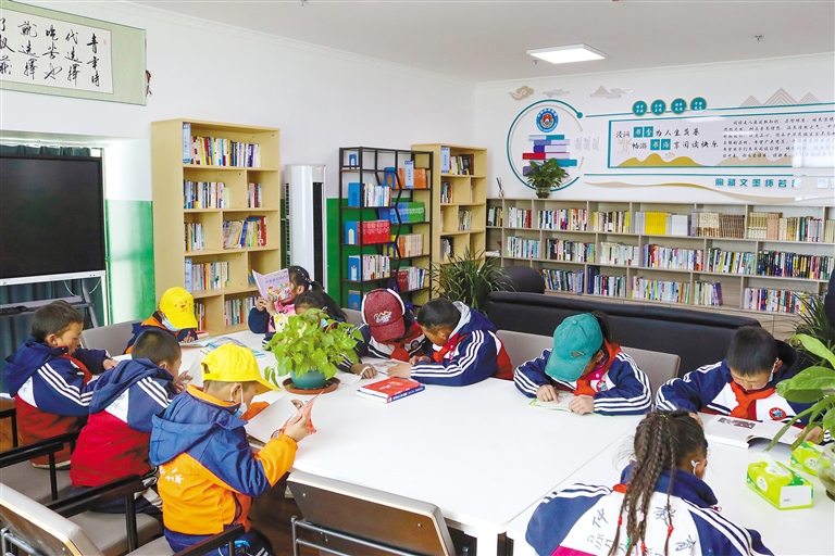 圖為亞熱鄉(xiāng)小學(xué)學(xué)生在“云上書苑”閱讀書籍。圖片由里孜出入境邊防檢查站提供