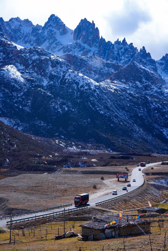 2024年11月1日,在四川省甘孜藏族自治州德格縣,車輛穿過(guò)雀兒山隧道后行駛在317國(guó)道上。