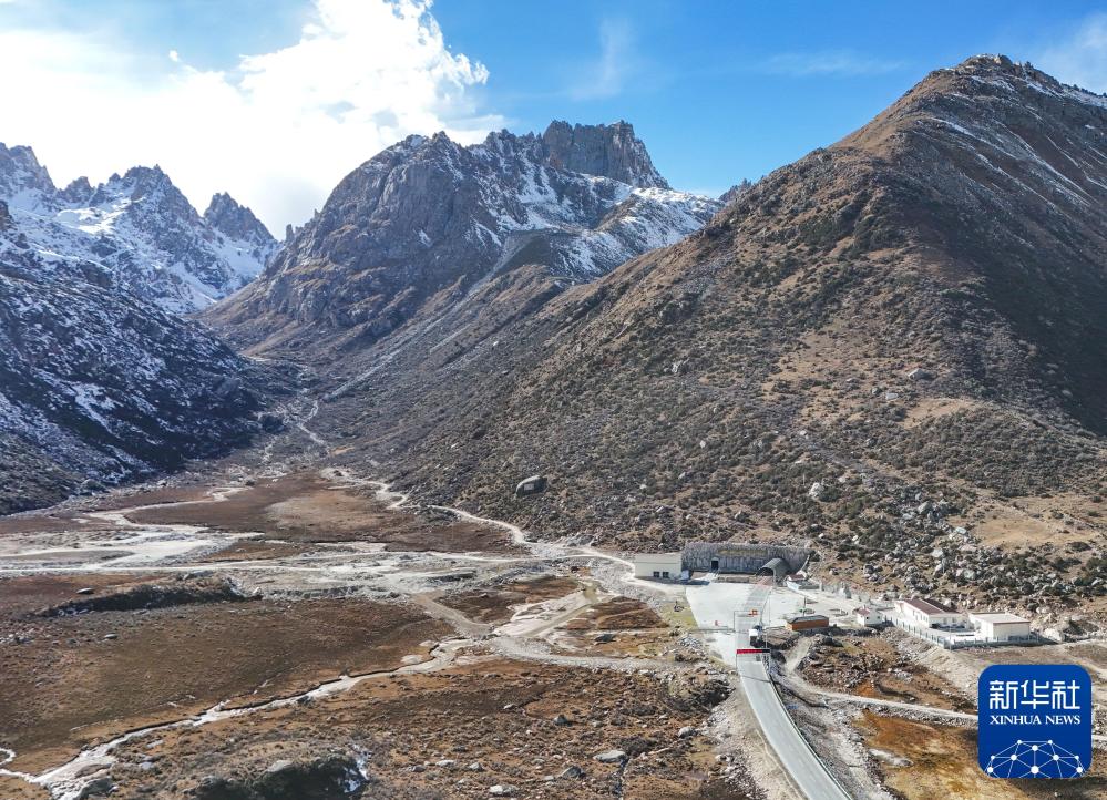 這是2024年11月1日拍攝的317國道雀兒山隧道口(無人機照片)。新華社記者 王曦 攝