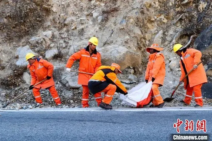圖為道班工人清理公路上的落石。中新社記者 貢嘎來(lái)松 攝