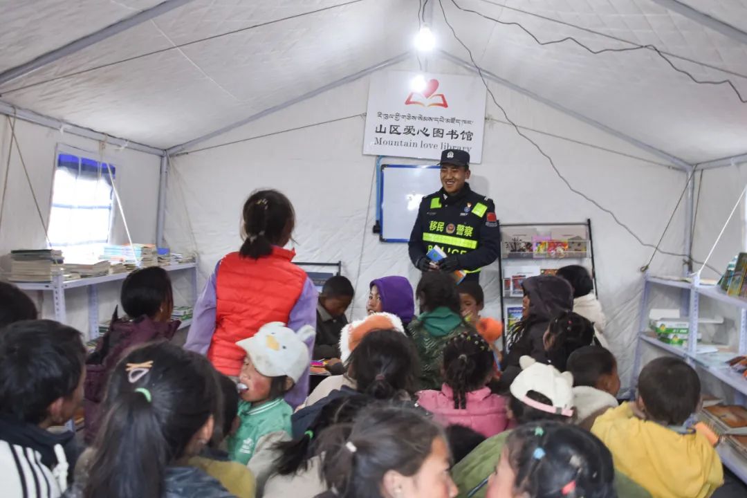 地震發(fā)生后,西藏邊檢總站日喀則邊境管理支隊(duì)救援民警不知疲倦地奔走在震中3個受損嚴(yán)重的村莊,了解震后群眾生產(chǎn)生活情況,協(xié)助解決面臨的各種困難問題。面對240頂帳篷,230戶1200余名災(zāi)民,民警們組建了抗震救災(zāi)雜村、嘎布村和玉白村臨時警務(wù)室,配備警力30人,實(shí)行24小時勤務(wù)模式,主要承擔(dān)交通疏導(dǎo)、宣傳教育、隱患排查、秩序維持、輔導(dǎo)功課、協(xié)助地方開展其他救援等任務(wù),同時設(shè)置常用藥箱,方便群眾用藥需求,被群眾親切地稱為“建在身邊的派出所”。