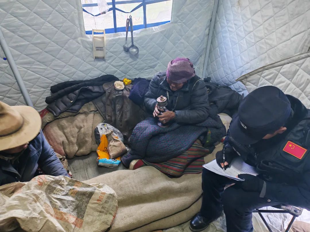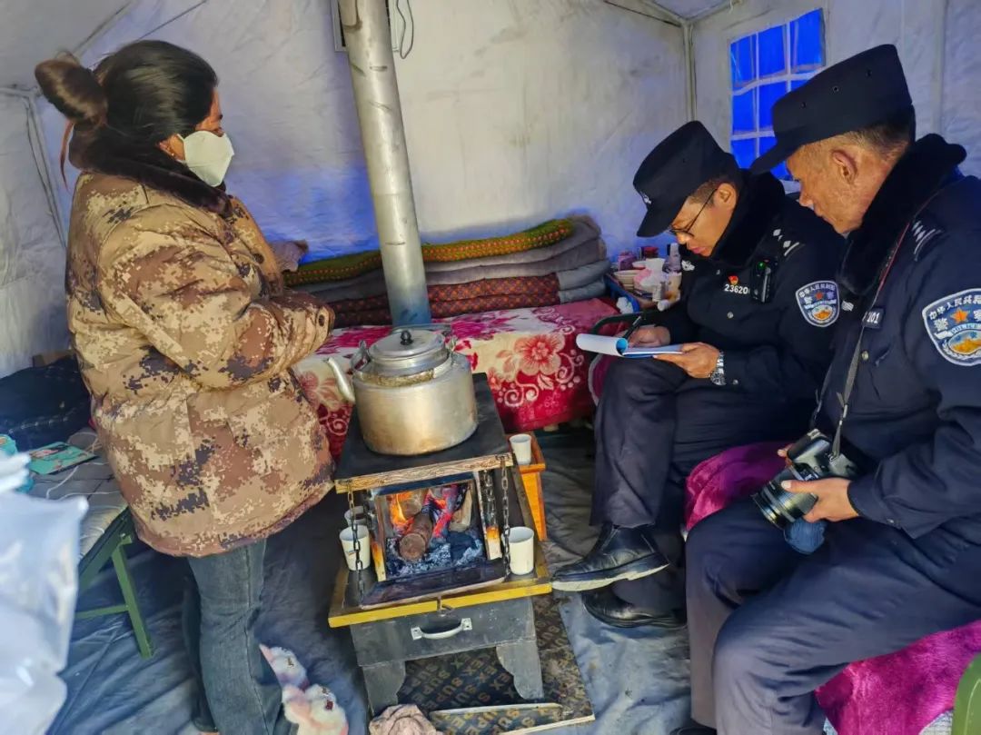 民輔警們穿梭于安置點(diǎn)的帳篷間,每到一處,都與群眾親切交談?!巴砩纤X冷不冷?”“吃飯還習(xí)慣嗎?”簡單的話語,飽含著無盡的關(guān)切。他們神情專注,認(rèn)真傾聽群眾的反饋,無論是基本的衣食住行問題,還是特殊的醫(yī)療需求,都詳細(xì)記錄在冊。對(duì)于行動(dòng)不便的老人與殘疾人,民輔警們更是格外關(guān)注,耐心細(xì)致地詢問他們在生活中遇到的種種困難,力求在第一時(shí)間給予解。