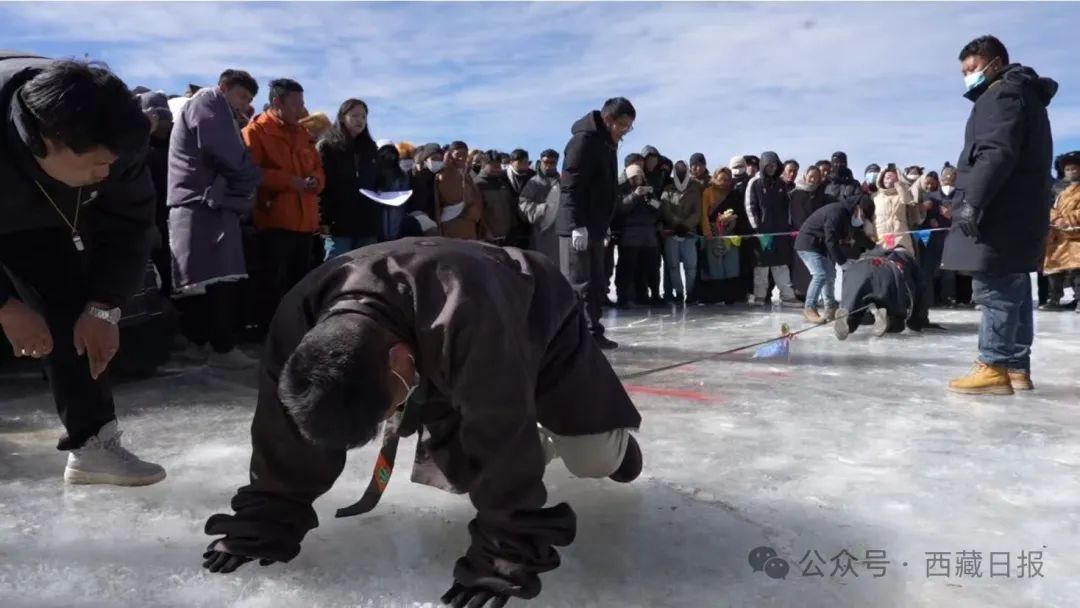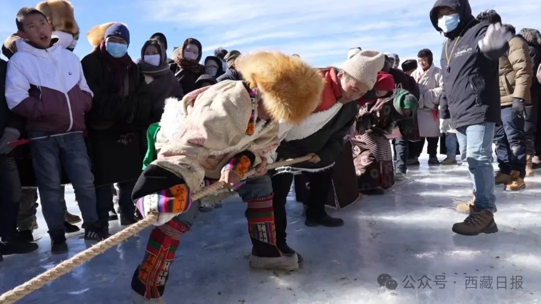 賽場(chǎng)上,傳統(tǒng)冰上項(xiàng)目亮點(diǎn)紛呈。牛嘎滑冰車(個(gè)人)賽中,選手身輕如燕,技巧嫻熟,在冰面上風(fēng)馳電掣;木制滑冰車(個(gè)人)和親子賽同樣扣人心弦,無(wú)論是個(gè)人賽的奮勇?tīng)?zhēng)先,還是親子賽的默契配合,都讓觀眾們目不暇接。自由滑冰賽里,大家展現(xiàn)著冰雪運(yùn)動(dòng)的自由與奔放。團(tuán)隊(duì)項(xiàng)目更是將氣氛推向頂點(diǎn)。冰上拔河,大家腳蹬冰面、咬緊牙關(guān)、全力拉扯,每一寸繩子的移動(dòng)都牽動(dòng)著眾人的心。冰上接力賽中,選手交接棒時(shí)的默契配合、全力沖刺,傳遞著團(tuán)結(jié)與拼搏的力量。吶喊聲、歡呼聲交織在一起,在夯錯(cuò)湖畔久久回蕩。
