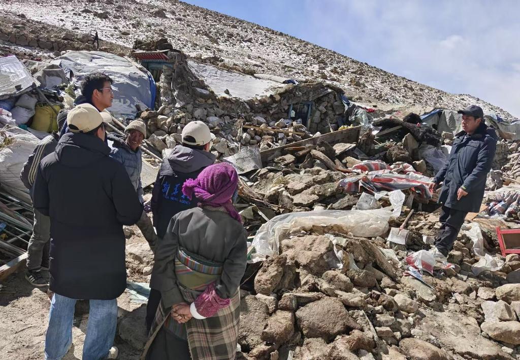 這次是政府工作人員第二次來(lái)到該村,核實(shí)災(zāi)情。珠桑一行人一到村里,開(kāi)始查看房屋和羊圈倒塌廢墟,詢問(wèn)牲畜傷亡和物資受災(zāi)情況。
